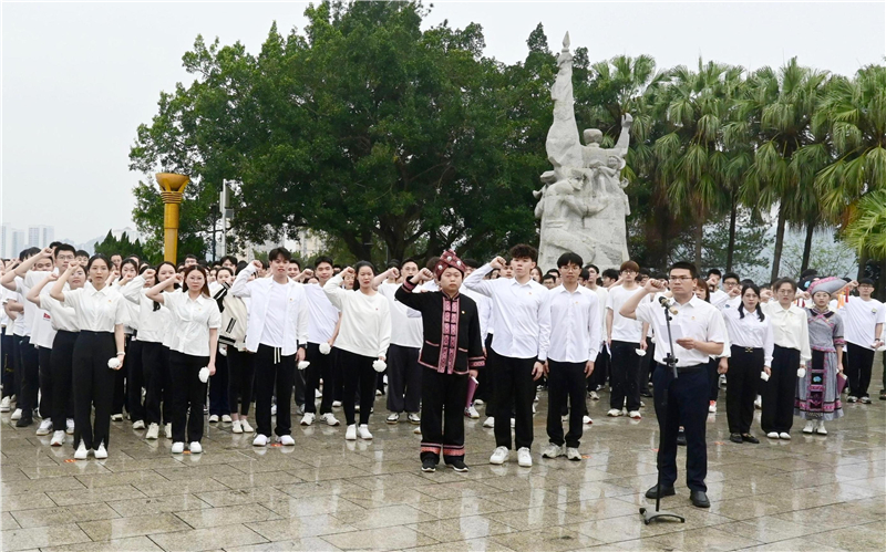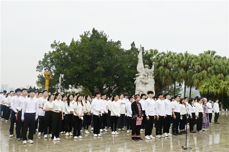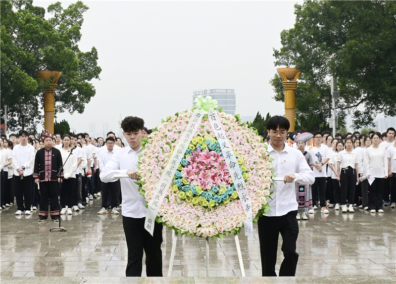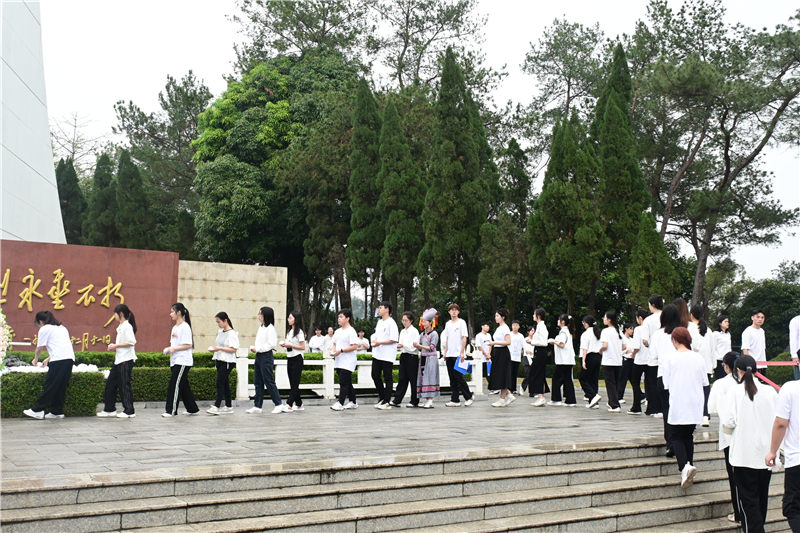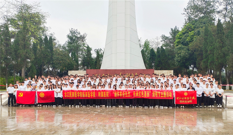 年年陌上生春草,岁岁清明思故人。为大力弘扬爱国主义精神,赓续红色基因,3月30日上午,必赢242net官网临床医学院(附属医院)组织学生前往百色起义纪念馆开展“缅怀革命先烈,传承红色基因”清明节主题活动。必赢242net官网临床医学院(附属医院)团委杨再见副书记及团委全体老师、学院学生团支部代表、各学生组织代表、医院团支部代表及青年文明号代表共计300多人参加本次活动。
