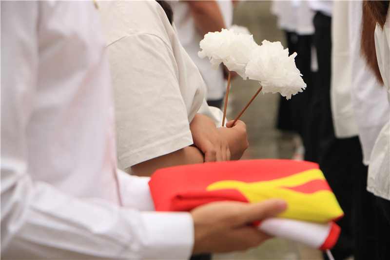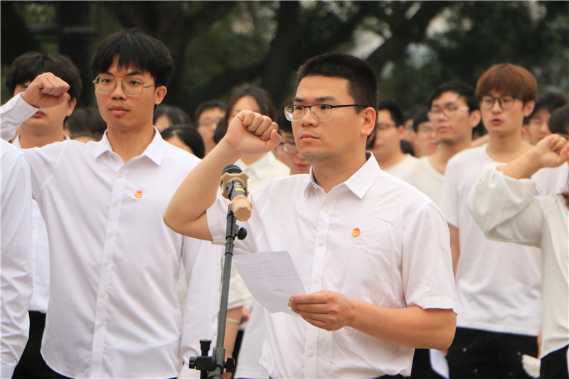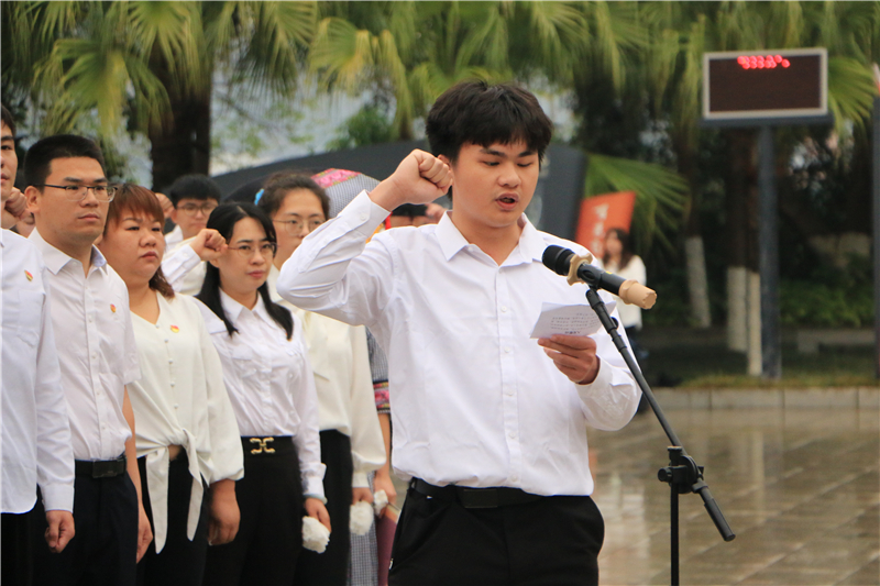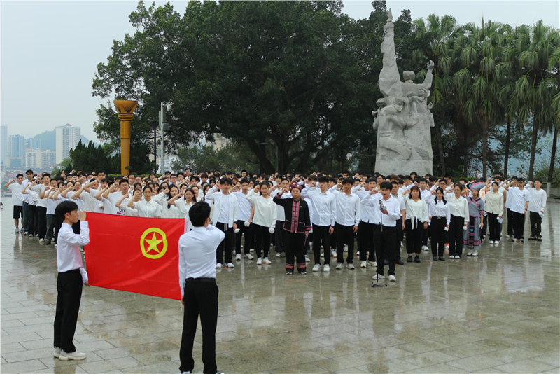 礼毕,青年代表为革命烈士敬献花圈,团委杨再见副书记缓步上前仔细整理花圈缎带。献花缅怀,誓言有声。各党支部在院团委杨再见副书记的带领下重温入党誓词,莫乐官同学带领各团支部重温入团誓词,字字铿锵的誓言响彻云霄。