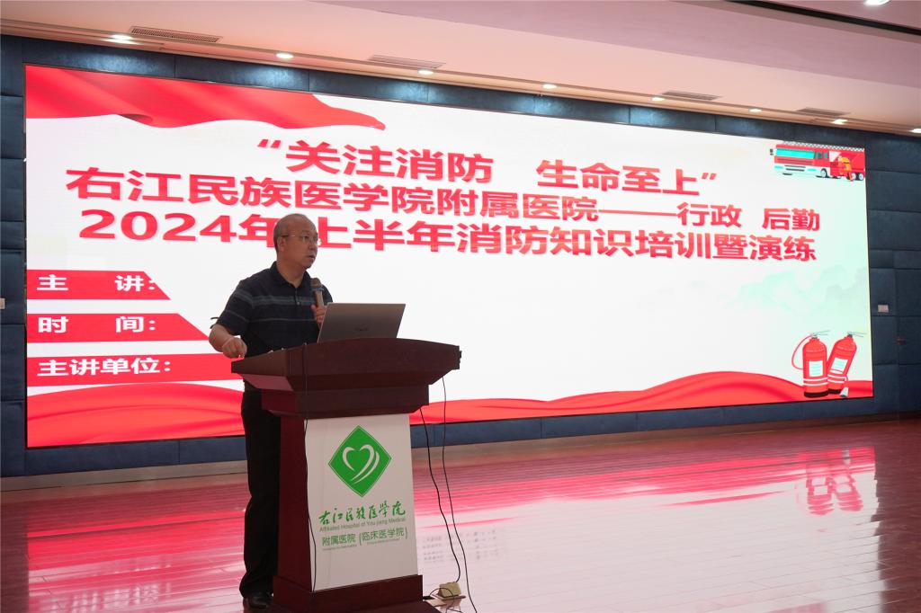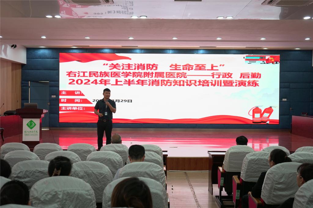 为保障医院各个科室及病区内人员与财物安全,最大限度的避免或减轻人员伤亡与财产损失,同时保证全院人员掌握必要的逃生技能,学会自救与救人,2024329日下午,右医附院在总院区学术报告厅开展行政后勤科室消防安全培训及应急演练。右医附院韦忠恒院长、陈文成副书记出席活动,右医附院总院区行政后勤科室全体人员参加培训会及消防演练。