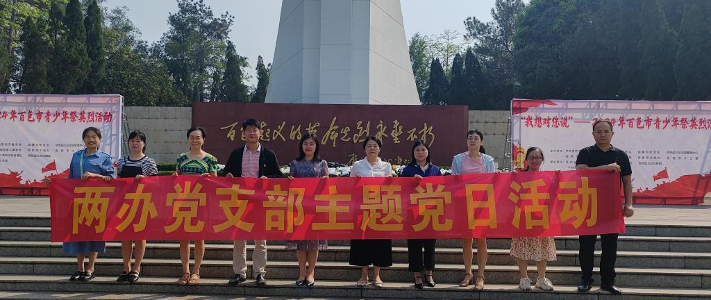 为缅怀革命先烈,激发爱国情怀,凝聚奋进力量,在清明节来临之际党办院办党支部组织党员前往百色纪念碑开展清明祭英魂 续红色血脉”烈士陵园祭奠英烈主题党日活动,缅怀为国献身的革命先烈,追忆他们的丰功伟绩。