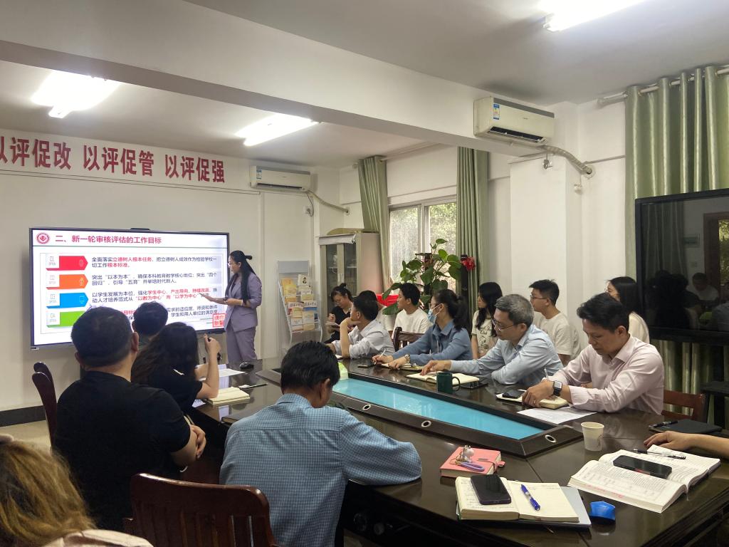 教务处处长韦忠恒强调,审核评估工作是今年学校教育教学工作中的一项重要工作,关系到学校的发展。教务处和教评中心要充分发挥引领作用,协同作战,勠力同心,齐心协力,把审核评估工作做好。党员干部要起到攻坚克难、勇于担当的带头作用,按照以评促建,以评促改,以评促管、以评促强的要求按质按量完成评建工作,为学校顺利通过审核评估交出一份满意的答卷,进一步促进学校教育教学高质量发展。