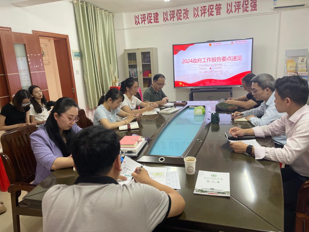 为深入学习贯彻第十四届全国人民代表大会第二次会议和全国政协十四届二次会议(简称两会)精神,推动教务处教学管理工作和审核评估工作落到实处,发挥教务处党支部党建引领作用。4月1日下午,教务处党支部在党员活动室召开“三三三”政治理论学习会,学校党委常委、副校长王俊利参加会议,会议由党支部书记郑学森主持,全体党员参加。