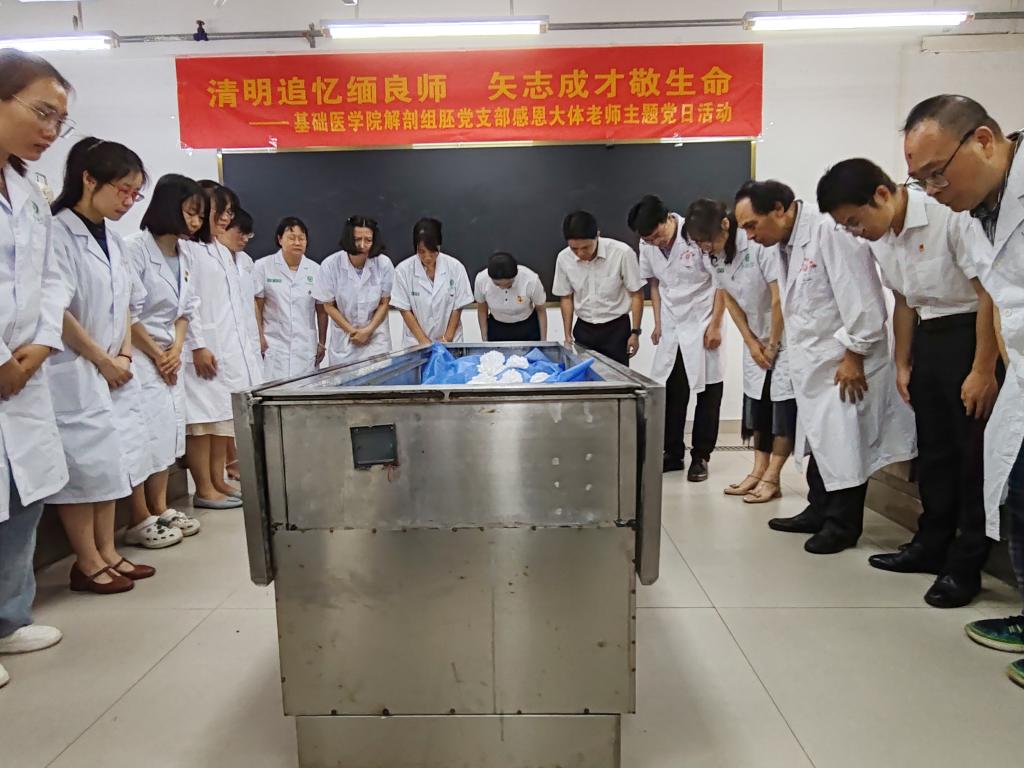 据了解,感恩缅怀大体老师是基础医学院感恩教育、生命教育、仪式教育中的一项重要内容,它不仅是解剖学课程思政的外延和拓展;更是学院“三全育人”工作体系、 “123456”党建品牌的建设的重要组成部分。通过这样一堂特殊的医学+人文的思政大课,切实学习贯彻习近平新时代中国特色社会主义思想,引导医学生树立远大理想,敬畏生命,感恩“无语良师”的奉献精神,加强同学们思想道德建设,培养同学们未来作为医护工作者的人文素养,促进医学与人文教育融合发展,提升医学人文素质和专业素养,切实将“三全育人”各项工作落到实处。