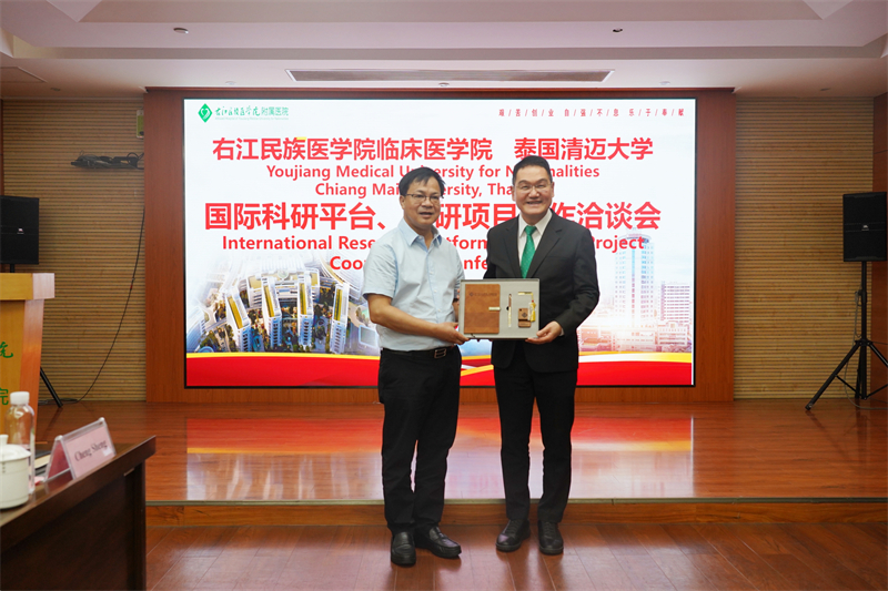 右医附院(临床医学院)韦忠恒院长代表医院与泰国清迈大学医学院代表团互赠纪念品