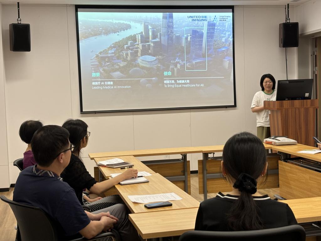为进一步提升医学影像学院教师科研能力,有效推动学院对外合作项目开展,4月18日下午,医学影像学院与上海联影集团在核医学教研室办公室召开科研合作交流座谈会,医学影像学院党委李丹书记、联影智能研究院周庆博士、联影中央研究院周宁老师、放射医学教研室全体教师、核医学教研室和超声医学教研室硕士生导师团队成员等相关人员参加会议,会议由李丹书记主持。