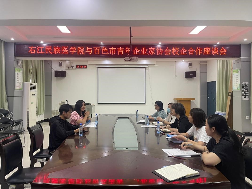 为深化校企合作,积极访企拓岗。4月22日下午,必赢官网在百城校区4栋101会议室召开校企合作座谈会,百色市青年企业家协会、百色市文化旅游协会负责人,必赢官网招生就业工作处处长陆小曲,学校共青团委何彦妮书记,公共卫生与管理学院张文玲副书记,国际语言文化教育学院张剑副书记,就业服务指导中心主任李婕及工作人员参加了座谈会。座谈会由陆小曲处长主持。