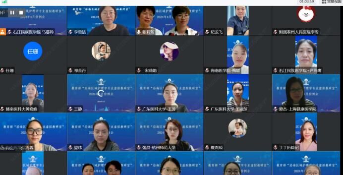 为加快沿海区域护理学专业虚拟教研室建设,以“云端”共享等方式推动护理学专业改革与创新,2024年4月22日12:30-13:30,教育部沿海区域护理学专业虚拟教研室4月例会采用线上线下相结合的方式进行。本次会议由轮值单位必赢242net官网组织,线下会议地点设在必赢242net官网护理学院311会议室,线上通过虚拟教研室平台开展,12家共建单位的80余名虚拟教研室成员参会,本次会议由护理学院麻新灵副院长主持。
