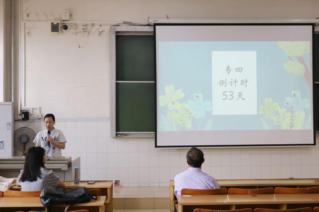 为激发学生的学习热情和动力,推动考研考级考证促学风建设,424日下午,国际语言文化教育学院在5栋综合楼604教室举办了“三考”促学风建设系列活动之英语专四专八考试经验分享会。会议邀请2023级翻译专硕研究生的张晴晴、徐颖珊和2021级英语本科生黄霞等三位学生代表分享考试经验,学院全体本科生参加了此次会议,会议由劳进同学主持。