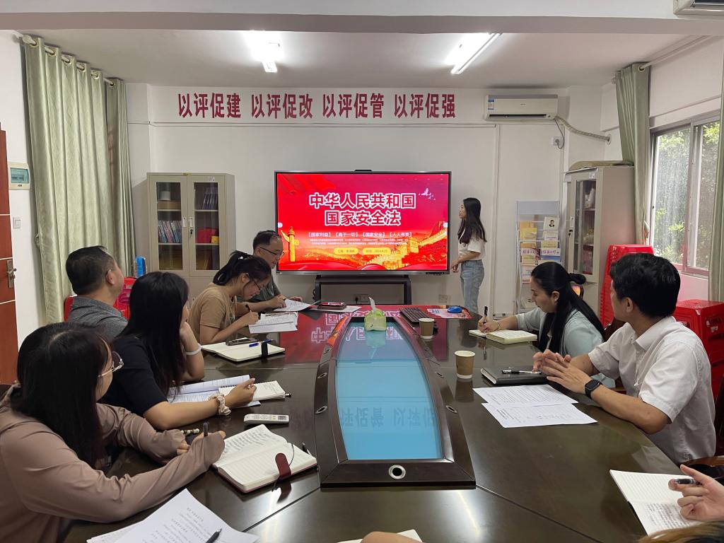 接下来支部开展国家安全主题党日活动。首先,由李涓娟同志领学《中华人民共和国国家安全法》,通过系统学习国家安全法,党员同志深入了解了国家安全的内涵和重要性,认识到维护国家安全是每个公民的责任,加深了对国家安全工作的认识,提升了法律意识和法治素养。接着支部书记郑学森传达了学习学校保密工作会议精神,要求各位党员同志做好保密工作,履行党员保密的责任和义务,严格遵守保密法规,增强保密意识。其次,党员同志结合岗位工作实际开展安全教育活动,就国家安全、实验室安全、危险化学品仓库安全、消防安全、人身安全等进行交流发言,对五一假期前的相关安全工作进行自查自纠。最后支部党员同志集体学习2024年春季学期《关于开展反诈进校园法治宣讲活动的通知》,进一步增强党员干部对电信网络诈骗的防范意识,提高自我保护、自我应对能力,有效地预防电信网络诈骗。