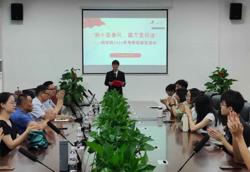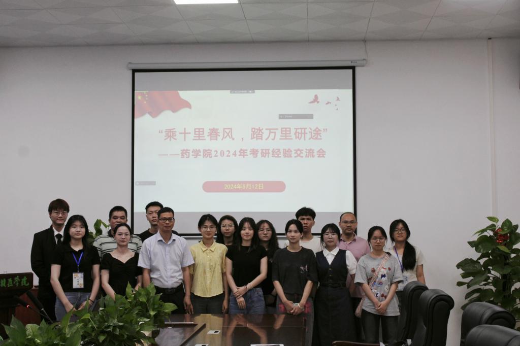 为了进一步加强同学们对研究生入学考试的认识,提高学生的考研热情,增强学生考研信心,明确考研目标,掌握相关考研技巧。5月12日,药学院在百东校区知行楼4楼会议室组织开展2024年“乘十里春风·踏万里研途”考研经验交流会。药学院院长韦贤、研究生学院副院长孙科、药学院黄祖良教授、学生科赵必精科长、学生科黄云晟、已成功考取2024年硕士研究生的学生及药学院有意向考研的本科生参与此次交流会。
