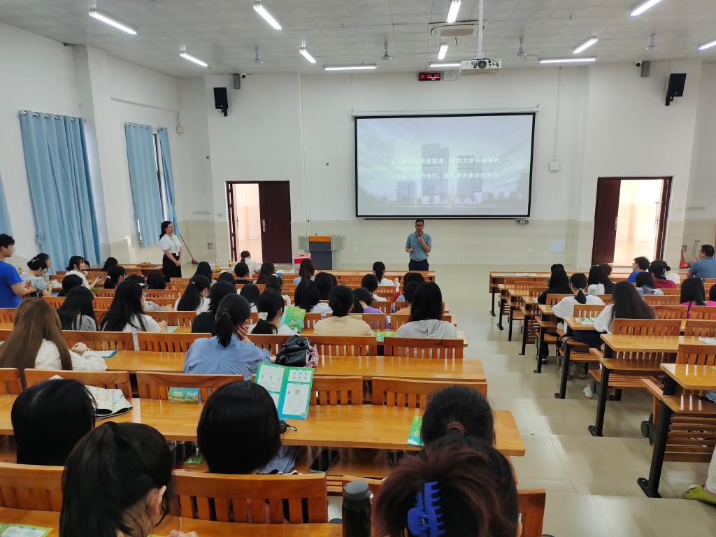 宣讲会上,广西大参林连锁药店有限公司代表以视频、图片、PPT等方式向求职同学简要介绍了公司发展历程,企业岗位需求及用人标准、企业人才储备、人才培养及薪资福利等内容。