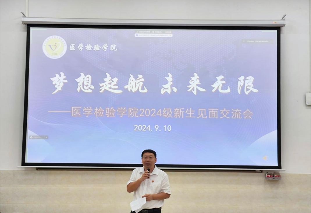 910日上午,医学检验学院在百东校区A-207教室举行了2024级新生见面交流会。会议采用线上线下相结合的方式进行,学校党委常委、副校长王俊利出席活动,医学检验学院副书记梁楚晗、副院长庞雅琴、副院长韦贵将以及学院教师代表、2024级全体硕士和本科新生参加活动。