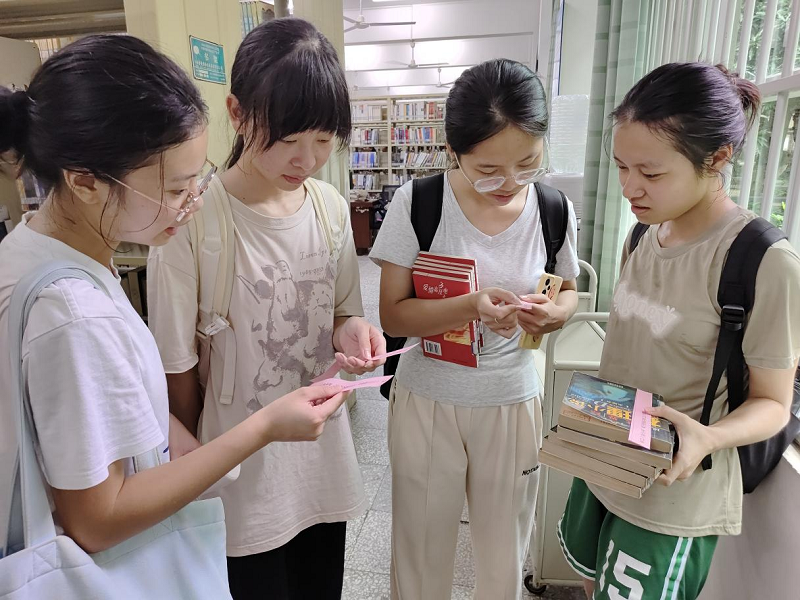 以书为灯,以谜为阅。七百多条谜语谜题内容包罗万象,涵盖古诗词、字谜、成语、历史、地理等多个领域。活动伊始,大家便驻足在自己感兴趣的图书及字谜条幅前,三三两两地围在一起,围绕字谜相互交流,乐此不疲。本次书海猜灯谜阅读活动极大地激发了广大师生的热情,共计近千人参与其中。