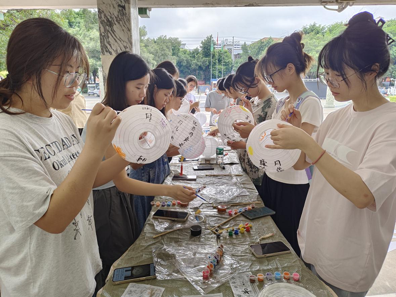 中华传统百部经典主题手绘灯笼制作现场一角