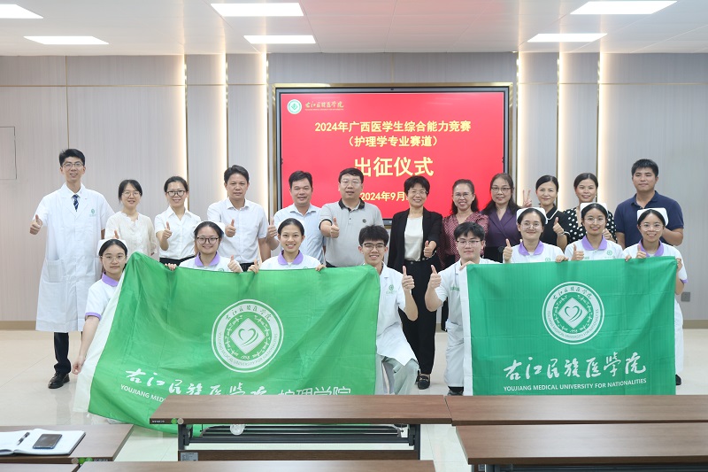 9月20日下午,护理学院举行2024年广西高校大学生医学技术技能大赛(护理学专业赛道)出征仪式。学校党委常委、副校长王俊利出席出征仪式,教务处、护理学院相关负责人,护理学院全体教职工及指导老师和参赛选手参加出征仪式。