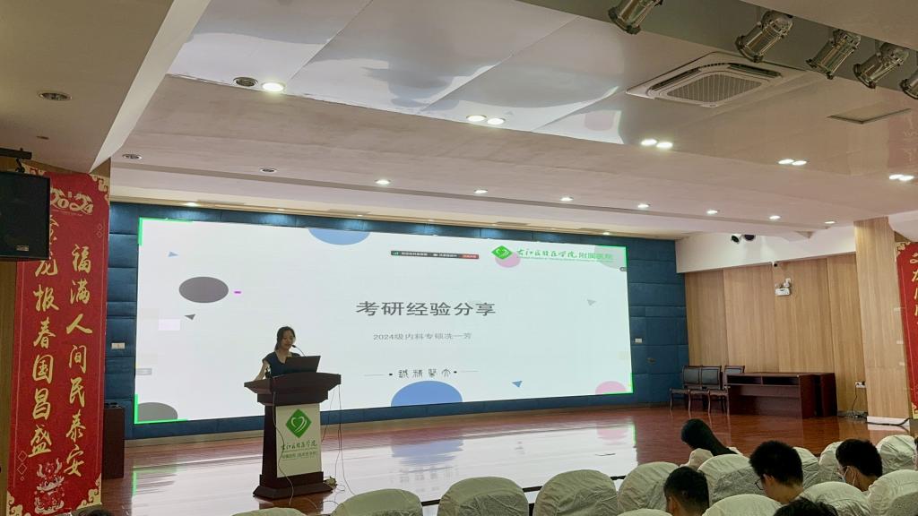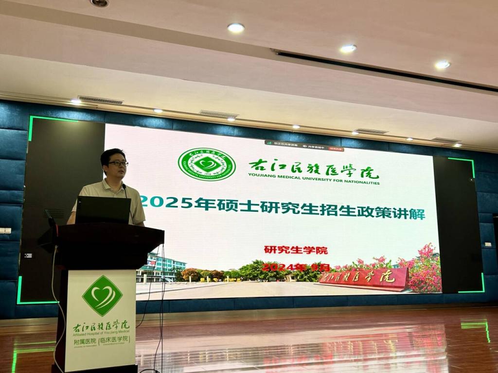 宣讲会现场,研究生学院副院长孙科对必赢官网2025年硕士研究生招生政策进行讲解,详细介绍了考研日程及注意事项、必赢官网研究生招生相关要求、同等学力申硕等政策,并寄语学生要坚定理想信念,牢记医学使命,开创卓越未来。