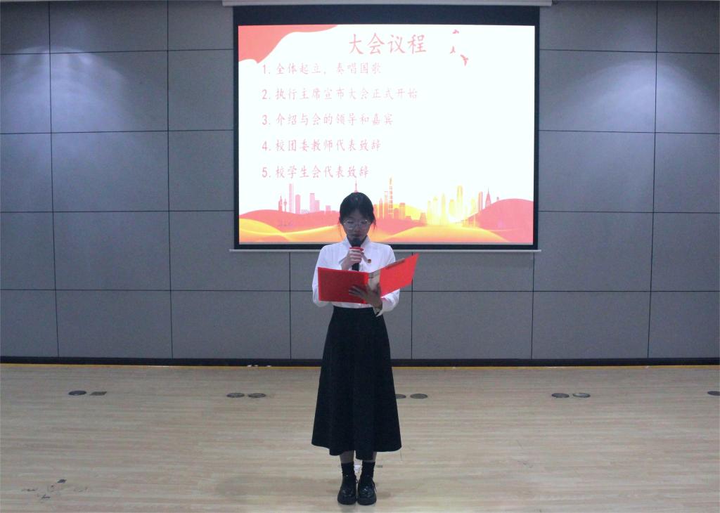 大会在庄严的国歌中拉开帷幕。钟源老师在会上致辞,他对学院团学代表提出三点要求,即坚定共产主义远大理想和中国特色社会主义,增强团学组织吸引力和凝聚力,努力学习科学文化知识,拓宽视野,增长才干。