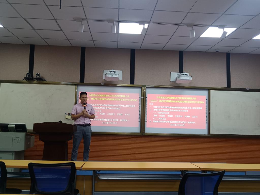 为深入学习贯彻习近平总书记关于铸牢中华民族共同体意识的重要论述和在全国民族团结进步表彰大会上的重要讲话精神,落实马克思主义学院党委“铸牢中华民族共同体意识‘十个一’系列主题活动方案”。近日,马克思主义学院举办了“铸牢中华民族共同体意识”主题学术沙龙,邀请今年在“铸牢中华民族共同体意识”方面获得课题立项或发表相关论文的老师进行学术经验分享。学院青年教师参加学术沙龙,学术沙龙由学院党委组织委员王子尖主持。