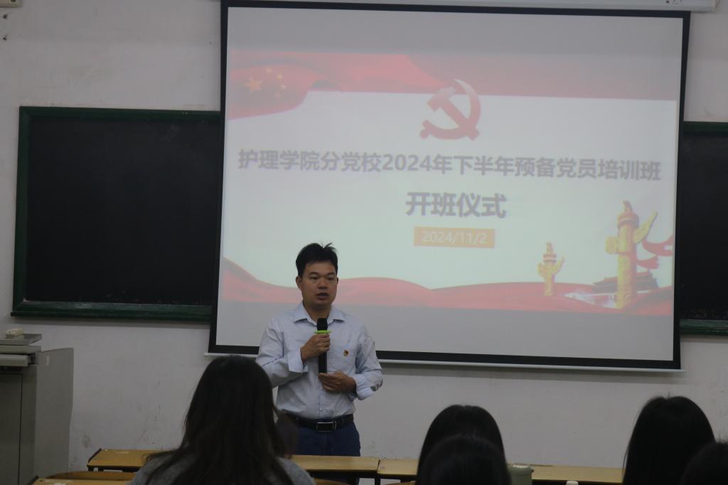 为进一步加强护理学院学生党员的教育培训,提升预备党员的政治素质、理论修养,确保新发展党员质量。11月2日,护理学院分党校开展预备党员培训班开班仪式暨第一课。护理学院党委副书记黄上峰出席开班仪式并授课,培训班全体预备党员参加了学习活动。