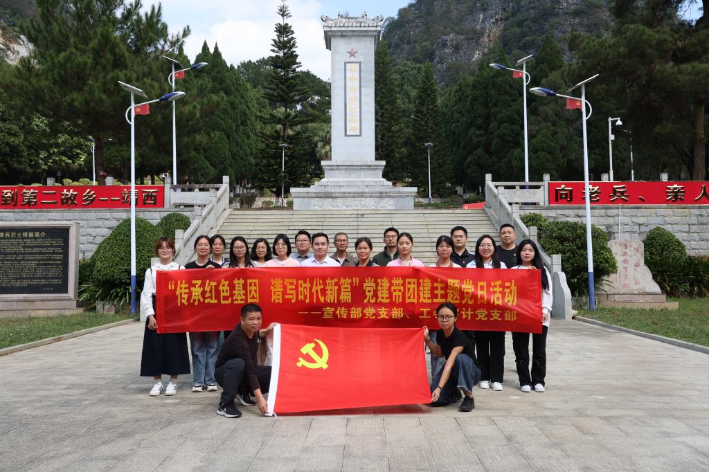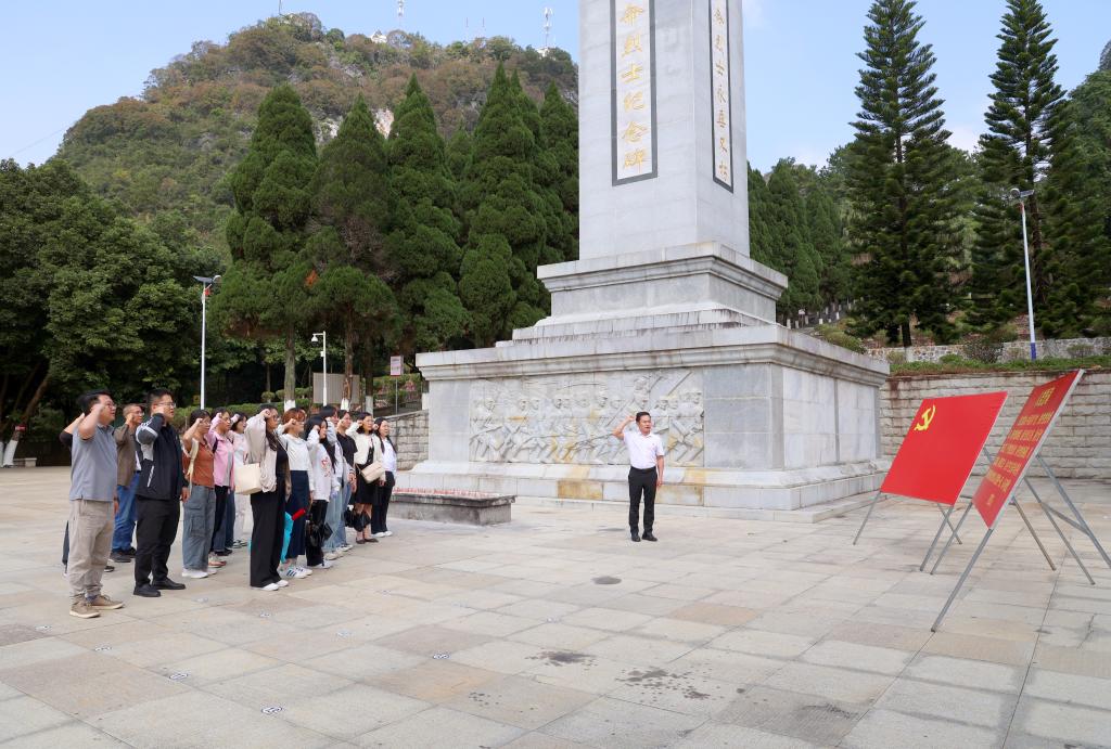 为深入学习贯彻党的二十大精神,进一步激发广大党员的爱国情怀和奋斗精神,11月6日,必赢官网工会审计党支部、宣传部党支部党员与大学生通讯社、演讲协会、健美操协会等学生组织、社团代表来到靖西市烈士陵园,开展“传承红色基因,谱写时代新篇”党建带团建主题党日活动。