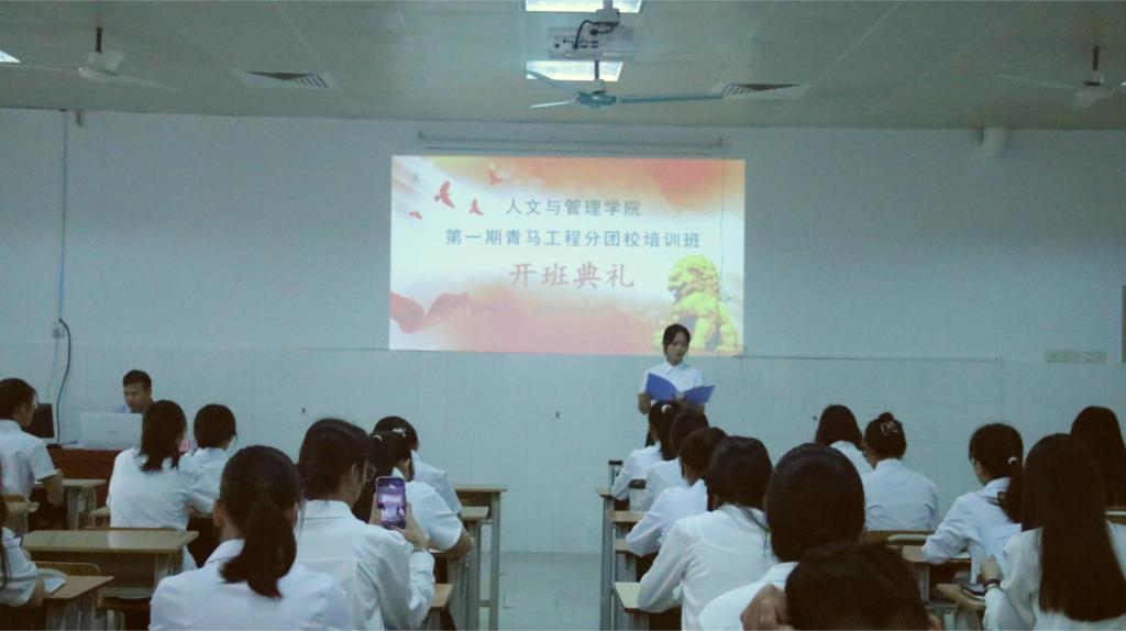 11月14日上午,人文与管理学院在6栋616教室举行第一期青马工程分团校培训开班典礼。本期分团校培训共有66名学员参加,人文与管理学院党委书记、院长李常应,院长助理韦艳春出席开班典礼。