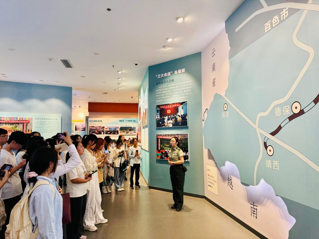 在教学活动现场,讲解员引导同学们沿着序厅、历程篇、帮扶篇、荣誉篇以及后记等篇章依次参观讲解,通过猪笼梯、澄碧湖水库建设、弄福公路修建和黄文秀扶贫日记等一段段精简文字、一张张珍贵图片、一件件历史实物的展示,全面展示了百色儿女百折不挠、砥砺奋进、决战贫困、决胜小康的良好精神风貌;生动诠释了改革开放以来,特别是党的十八大以来,中国共产党团结带领百色革命老区各族人民在全面建成小康社会和全面建设社会主义现代化国家的伟大征程中所取得的历史性成就、所发生的历史性变革。