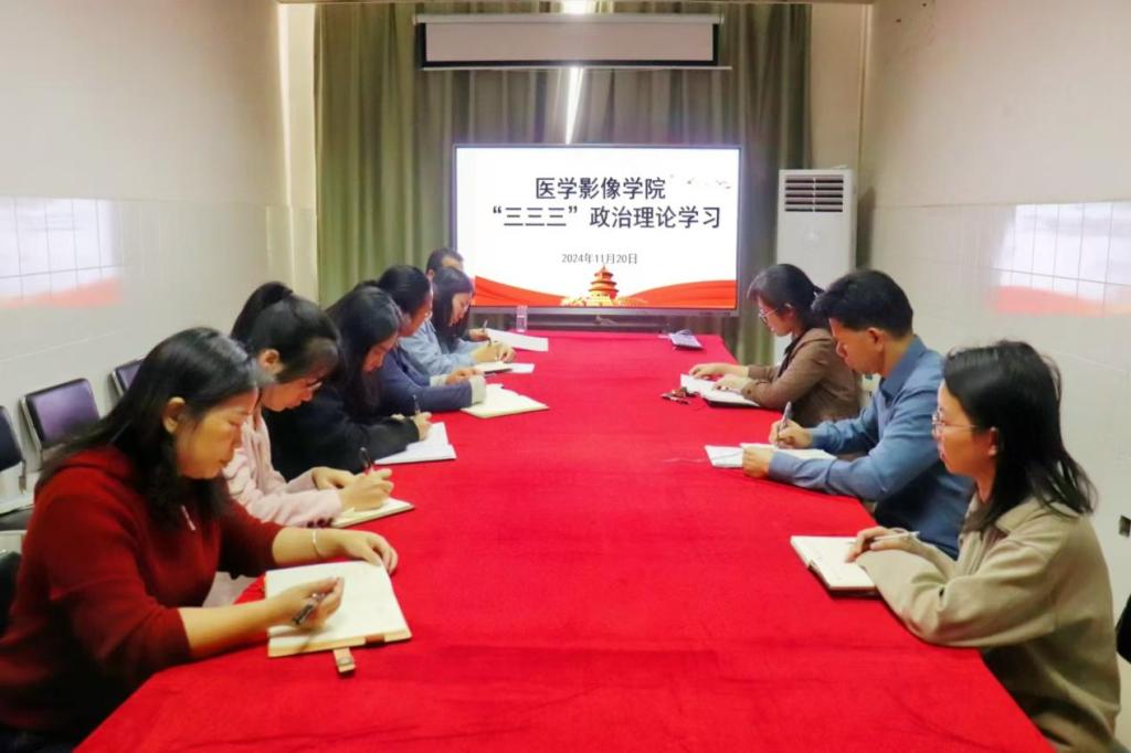 为深入学习贯彻党的二十届三中全会精神,落实学校人才培养方案,加强防诈骗宣传教育,1120日下午,医学影像学院在百城校区66楼党员活动室开展第十二周“三三三”政治理论学习。本次会议由学院党委书记李丹主持,学院本部全体教职工参会。