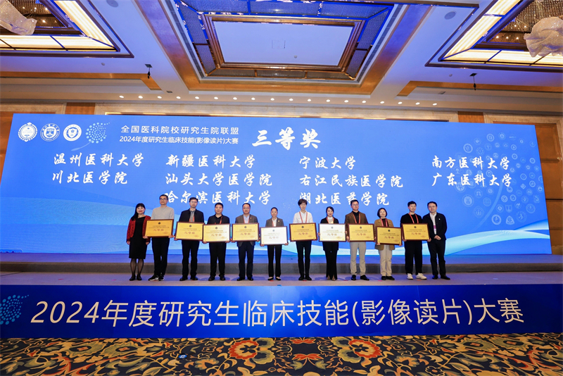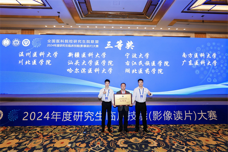 比赛紧张激烈,面对一组组复杂多变的医学影像资料,参赛选手们凭借扎实的理论知识和团队协作精神,迅速精准地剖析病情,作出诊断。比赛期间,右医附院参赛的两名研究生充分展现了扎实的影像读片临床技能功底,以总分排名第7的复赛成绩挺进15支决赛队伍,最终在强手如林的全国研究生高校中脱颖而出勇夺三等奖,赛出了水平,展现出右医附院研究生的风采。