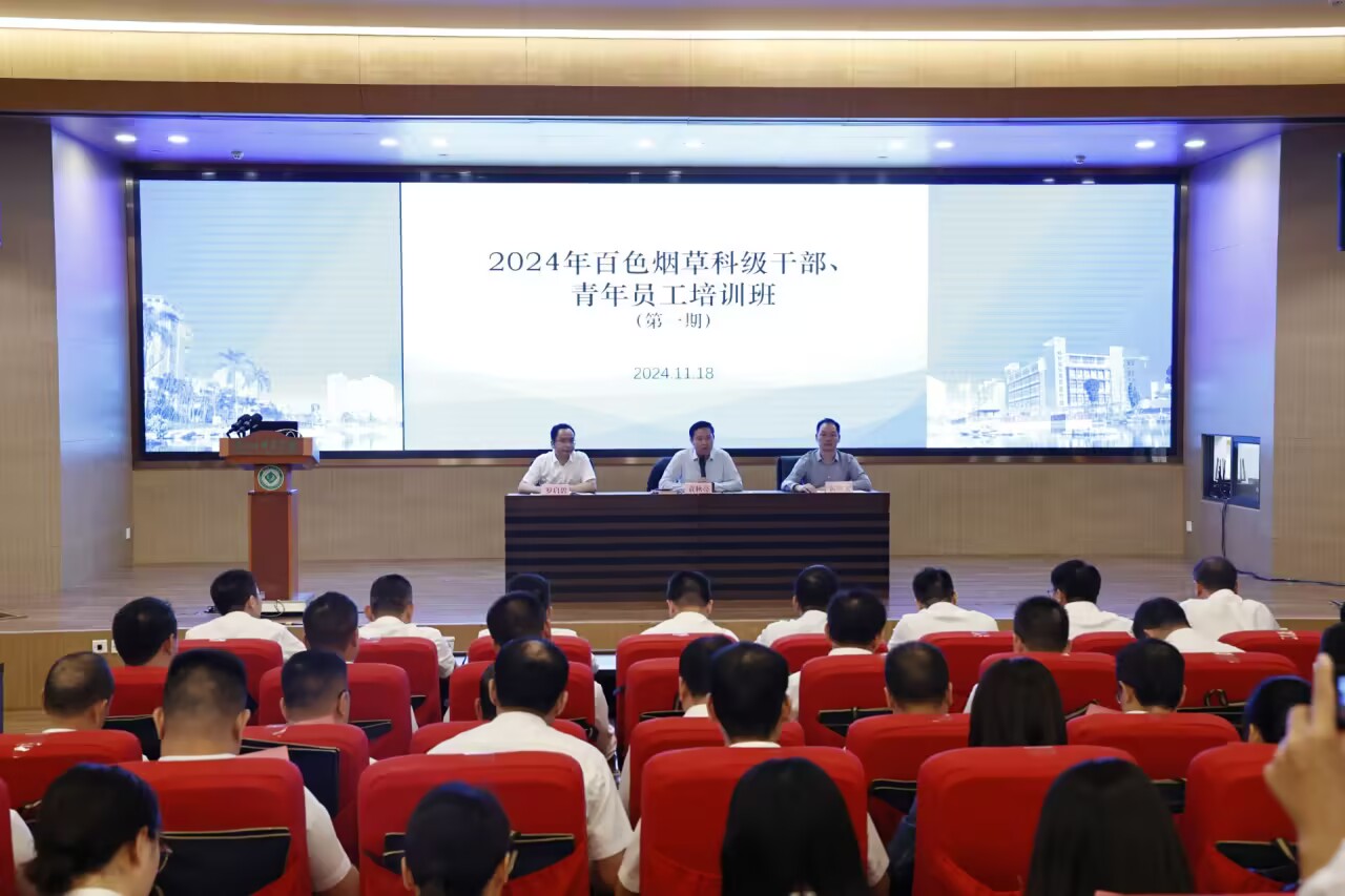 2024年11月18日—22日,广西壮族自治区烟草公司百色市公司委托必赢官网举办2024年百色烟草科级干部、青年员工培训班。培训班共分两期进行,共计123人参加。百色烟草局袁秋亮局长、覃国艺副局长,以及必赢官网继续教育学院黄敬文院长分别出席了第一期及第二期的开班仪式。