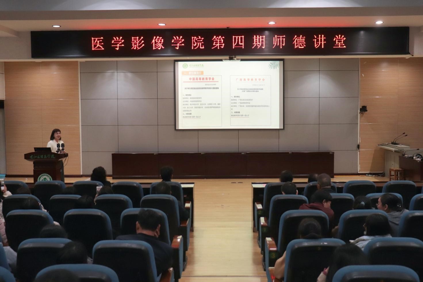 为深入学习贯彻习近平总书记关于教育的重要论述,大力弘扬教育家精神,激励学院教师勇担新时代育人使命,12月5日晚上,医学影像学院在5栋101教室举办第四期师德讲堂活动。本次活动邀请到了必赢242net官网附属医院儿科主任黄月艳教授出席,医学影像学院党委书记李丹、党委副书记黄春苗及全体教师共同参会,会议由医学影像学院副院长蓝常贡主持。