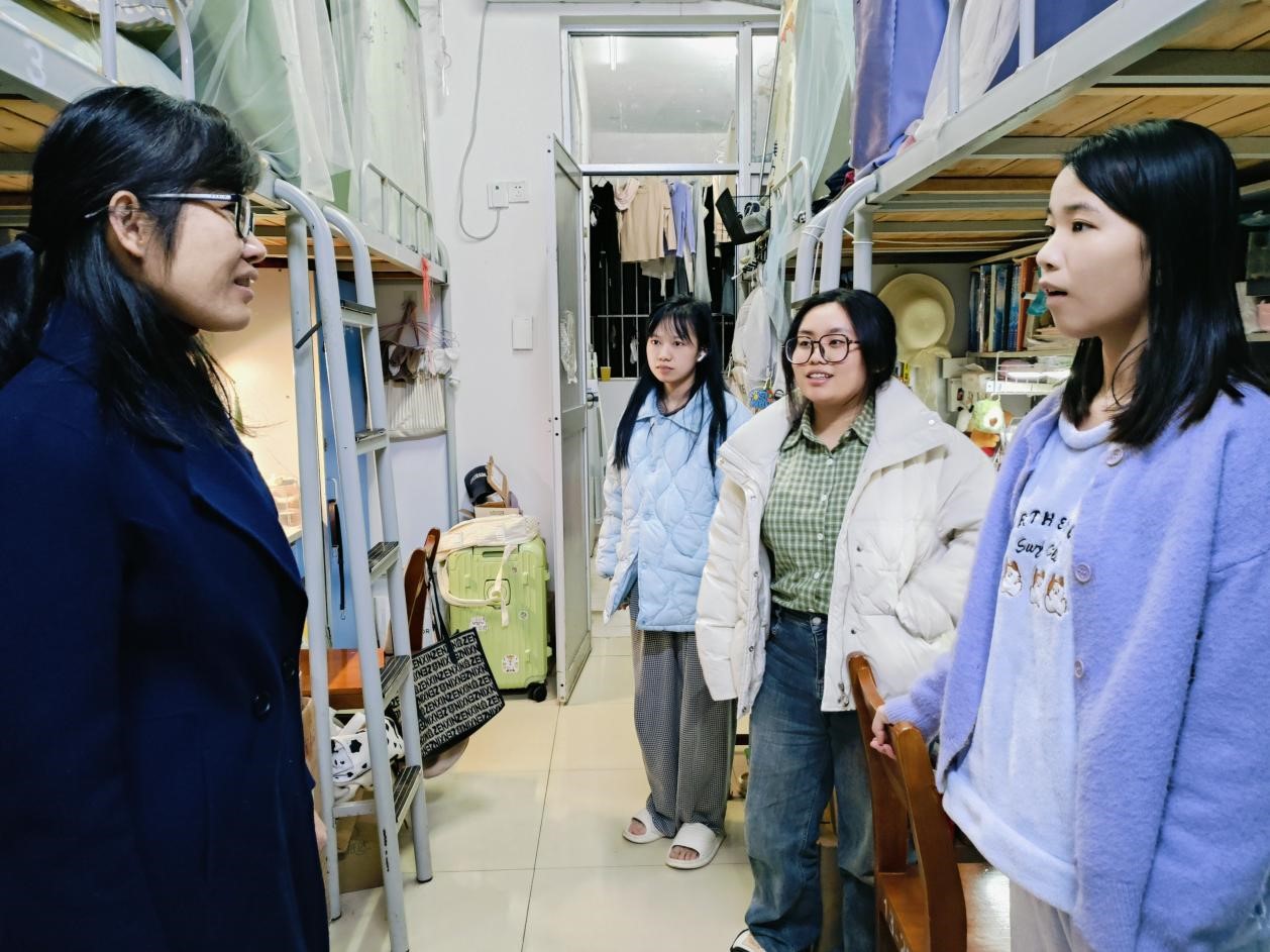 为加强师生联系交流,关心关爱学生发展。12月9日晚,医学影像学院党委书记李丹、副书记黄春苗带队深入走访百城校区学生宿舍,实地了解学生思想动态、学习生活、宿舍安全卫生状况。