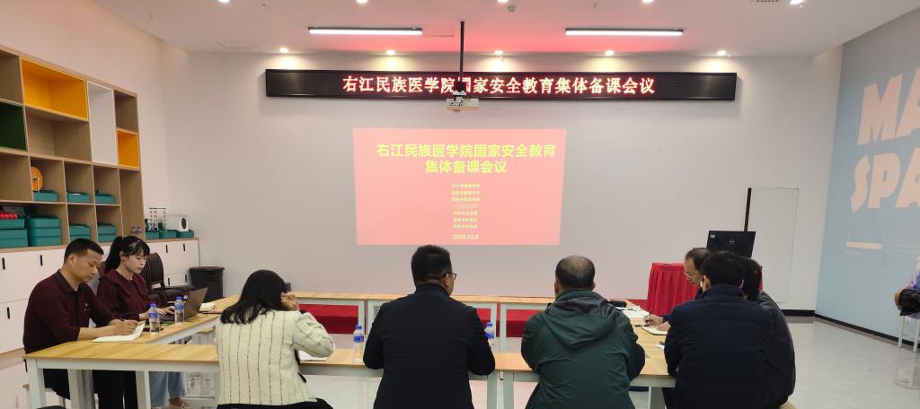 为更好地利用地方资源办好国家安全教育公共基础课,12月6日上午,马克思主义学院在百色市科技馆多功能厅开展国家安全教育集体备课会议,邀请百色市委国安办、百色市委宣传部、百色市公安局、百色市外事办和百色市科技馆等单位的领导和专家,马克思主义学院党委书记、院长许世华,副院长左伟尘和教师代表参加会议,会议由许世华主持。