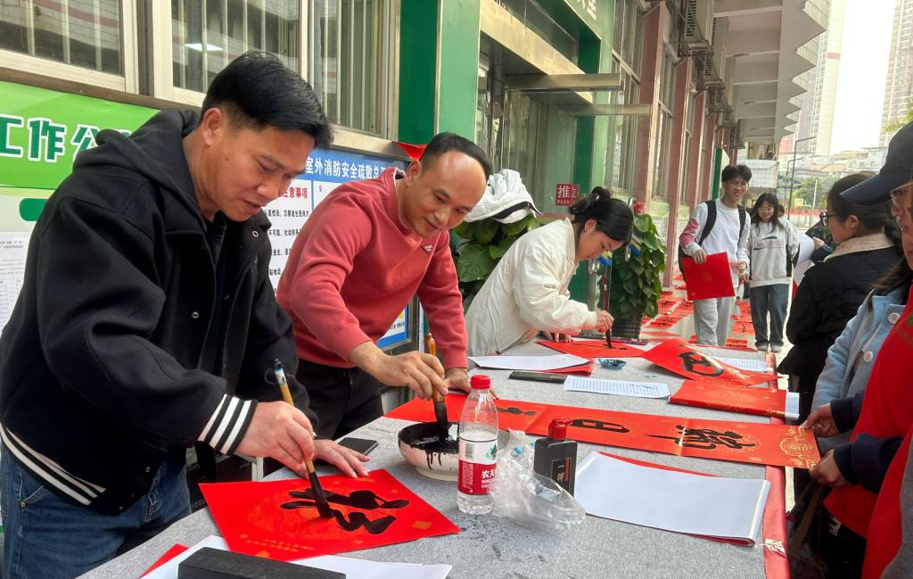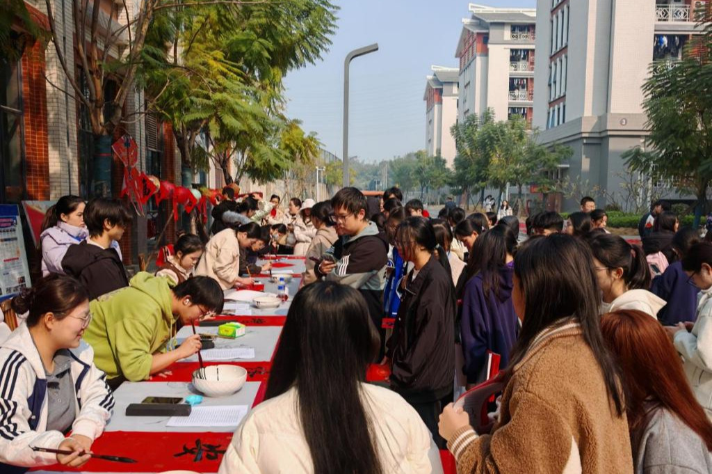 为大力弘扬中华优秀传统文化,营造浓厚的节日氛围,丰富校园文化体验,让美育浸润校园,同时为学生们提供就业规划指导服务,落实“我为群众办实事”实践活动。1月6日,学校机关党委联合百帝策划公司在百东校区和百城两校区,结合“一站式”学生社区举办“新年蛇舞起宏图 墨香校园绽芳华”校园新年送春联送祝福活动。机关党委、团委党支部、招生与就业指导服务中心党支部、学生工作处党支部党员代表,人文与管理学院教师代表和书画协会成员共同参与,提供书写春联送祝福、职业规划和就业指导送温暖、汉服体验送美好等为民服务,得到广大师生的好评。