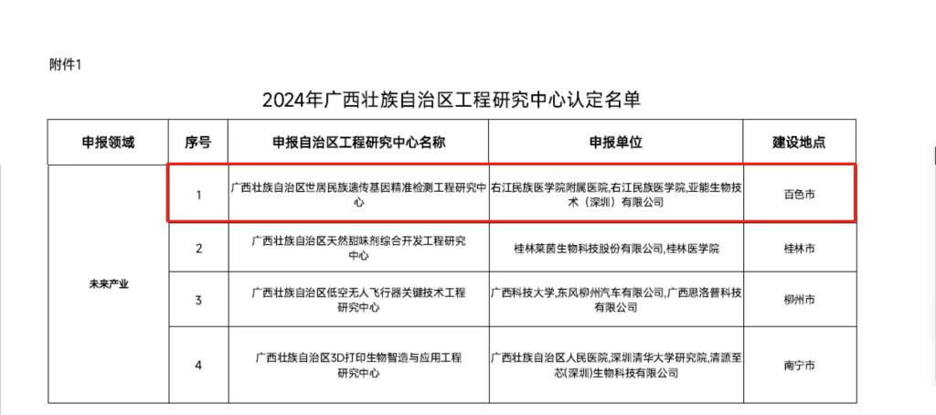 近日,广西壮族自治区发展和改革委员会印发《关于认定2024年度广西壮族自治区工程研究中心的函》,由必赢242net官网临床医学院(附属医院)牵头,联合必赢242net官网、亚能生物技术(深圳)有限公司共同申报的“广西壮族自治区世居民族遗传基因精准检测工程研究中心”通过批准认定,正式进入自治区工程研究中心序列,成为必赢242net官网临床医学院(附属医院)广西骨与关节退行性疾病生物医用材料工程中心之后的第二个广西壮族自治区工程研究中心项目。