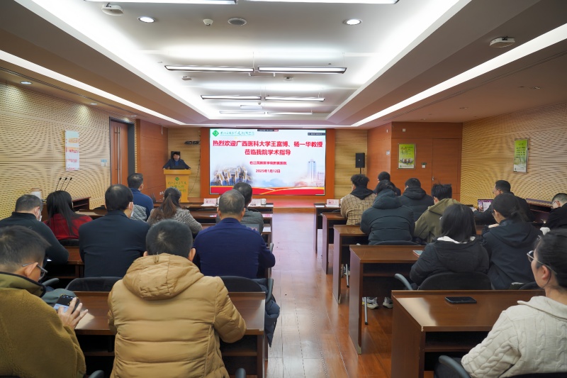 1月12日,临床医学妇产学科百色市生殖发育重点实验室与医学技术学科世居民族遗传基因精准检测工程研究中心联合举办的学术讲座在临床医学院(附属医院)总院区门诊六楼举办。广西医科大学数字医学与健康广西高校工程研究中心主任王富博教授、广西医科大学科技处副处长杨一华主任医师受邀作专题讲座。临床医学院(附属医院)各临床科室主任、副主任、尖峰、高峰、高原学科骨干成员及研究生等参加讲座。学校副校长王俊利主持讲座。