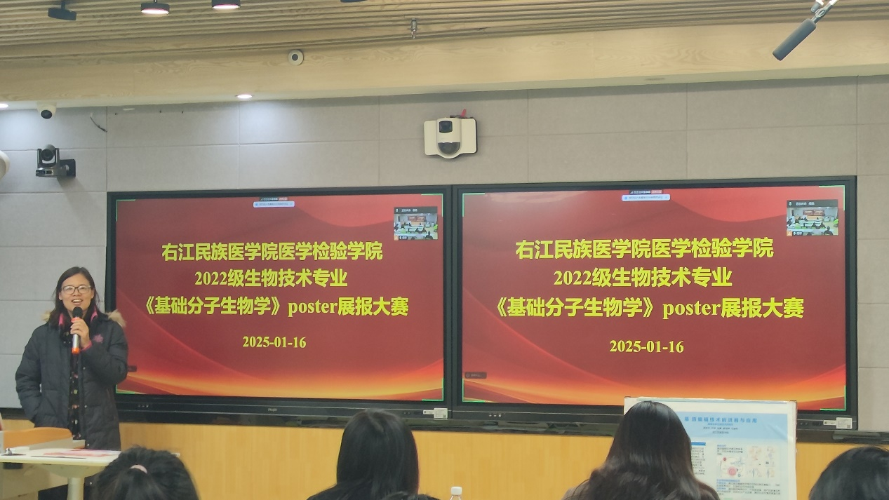 为落实立德树人根本任务,夯实以学生发展为中心的教育理念,1月16日下午,医学检验学院圆满举办了生物技术本科专业《基础分子生物学》课程Poster设计大赛。2022级生物技术本科班全体学生参加,院长庞雅琴教授、罗艳红教授、姜成宇博士、车志群博士、雷雪博士等莅临指导并担任比赛评委。比赛共评出一等奖1个、二等奖2个、三等奖3个、优秀奖6个。
