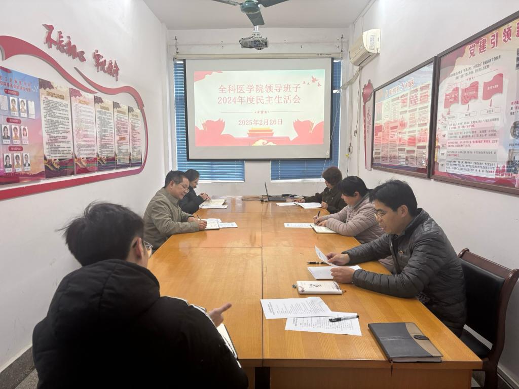 为深入学习贯彻习近平新时代中国特色社会主义思想,巩固深化党纪学习教育成果,综合发挥党的纪律教育约束、保障激励作用。2月26日上午,全科医学院在百城校区4栋3楼党员活动室召开领导班子2024年度民主生活会。学校党委书记李雪斌,党委组织部副部长廖满媚到会指导。会议由学院党委副书记银联飞主持,党支部书记、党员代表列席旁听。