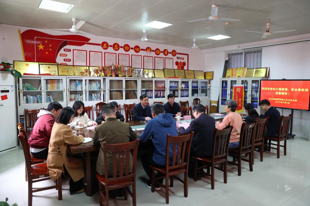 3月6日下午,公共卫生学院在6栋810会议室举办了公共卫生与预防医学人才培养、学科建设座谈会。广西医科大学原党委书记仇小强教授和桂林医学院原党委书记张志勇教授,作为业内资深专家,应邀出席并现场指导。学校党委常委、副校长谭盛葵出席并主持会议,公共卫生学院党委副书记、院长郭蕊,各科室负责人、教研室主任、秘书以及教师代表参会。