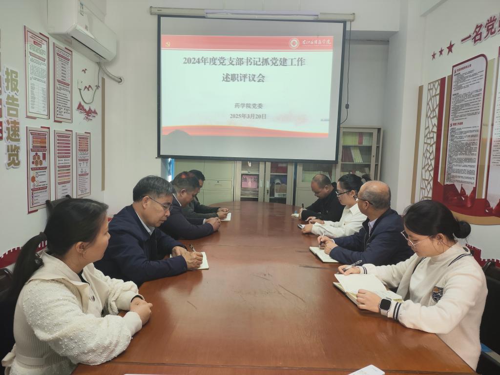 为深入学习贯彻习近平新时代中国特色社会主义思想和党的二十届三中全会精神,夯实基层党建工作,推动学院党建工作提质增效,3月20日上午,药学院党委召开2024年度基层党支部书记抓党建述职评议会。药学院党委委员、党支部书记参加会议,会议由药学院党委书记陈秉朴主持。