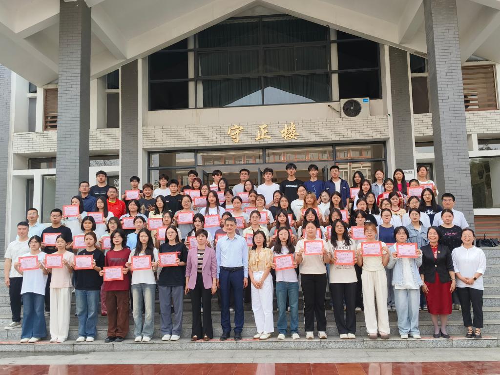 在热烈的掌声中,获奖同学分批次登台接受荣誉证书,红色证书与年轻医学生们充满朝气的面庞交相辉映,定格成典礼最动人的画面。颁奖仪式结束后,全体与会人员移步守正楼台阶前拍摄集体合影,见证着新一代医学人文精神的传承。