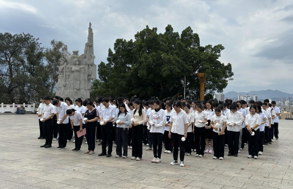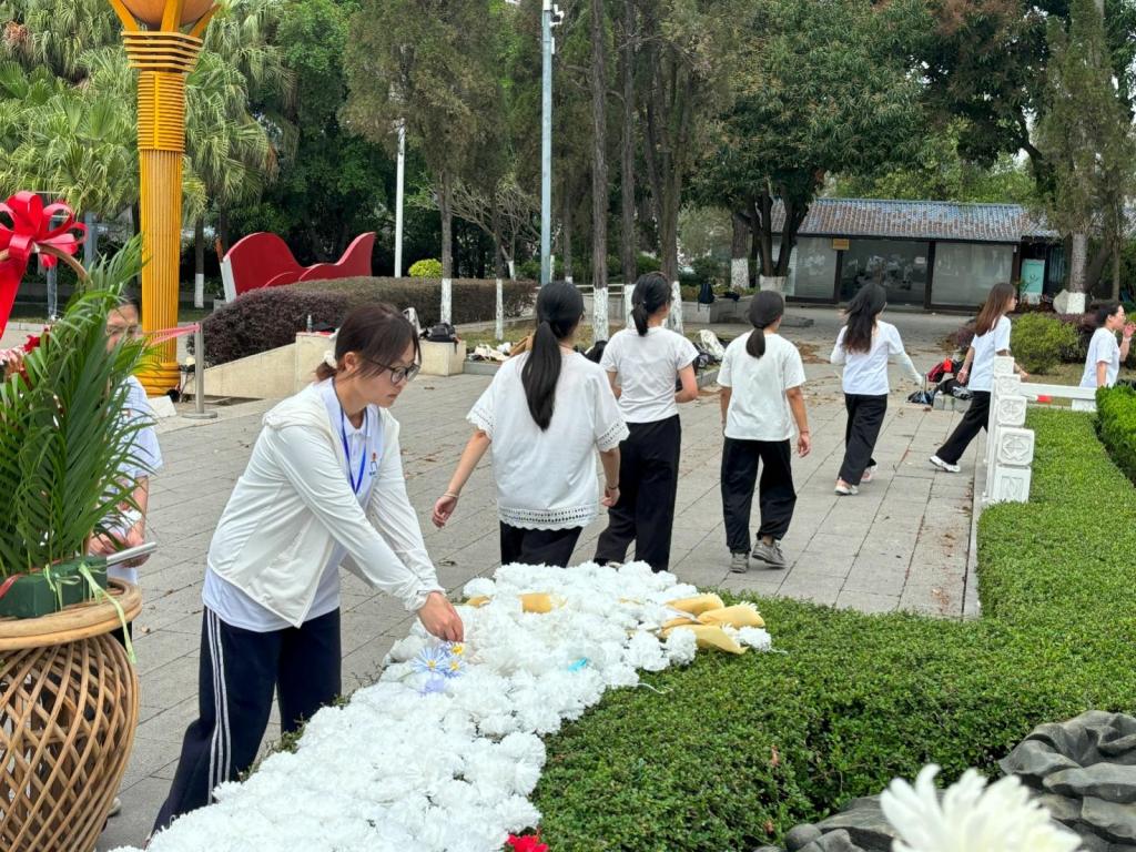 师生们依次向革命烈士敬献小白花。