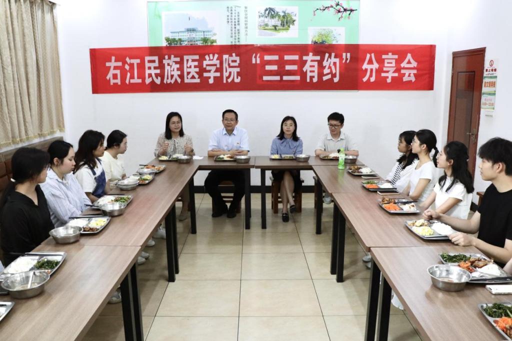 4月16日,以“书香致远润红心·团结筑梦向未来”为主题的第四十三期“三三有约”分享会在百城校区第一食堂2楼精华厅举行,学校党委书记李雪斌邀请同学们共进晚餐,聊聊“家常”,学校党委办公室、团委负责人陪同参加。