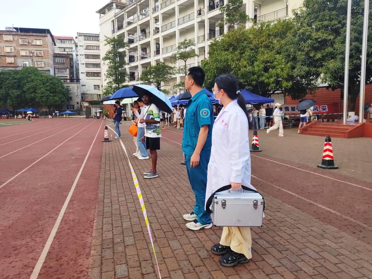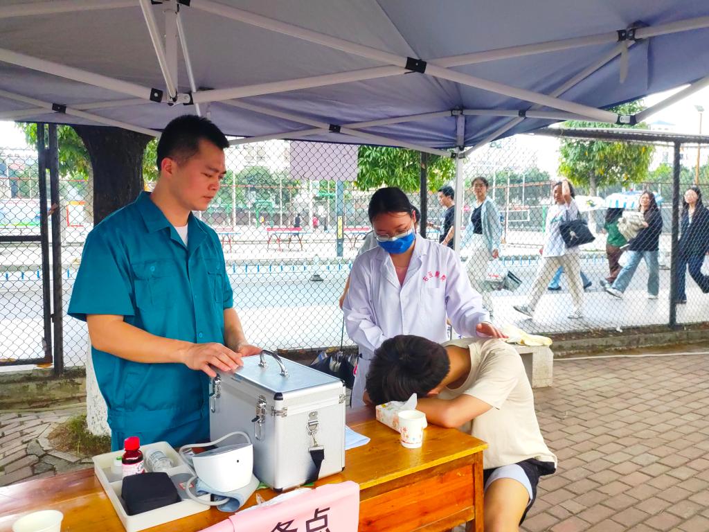 赛后,运动员动情地说:“看到医疗服务点随时待命的医生,我们才能放心拼搏。”另一位同学回忆,班上有一名同学突然面色潮红站立不稳,他立即翻出班群里刚发的“中暑应急处置”,按步骤转移至阴凉处、补充含盐饮料、冷敷颈动脉,为后续的专业救治赢得黄金十分钟……而浑身湿透的后勤工作人员只是笑着摆手:“只要比赛平安顺利,再累都值得!”