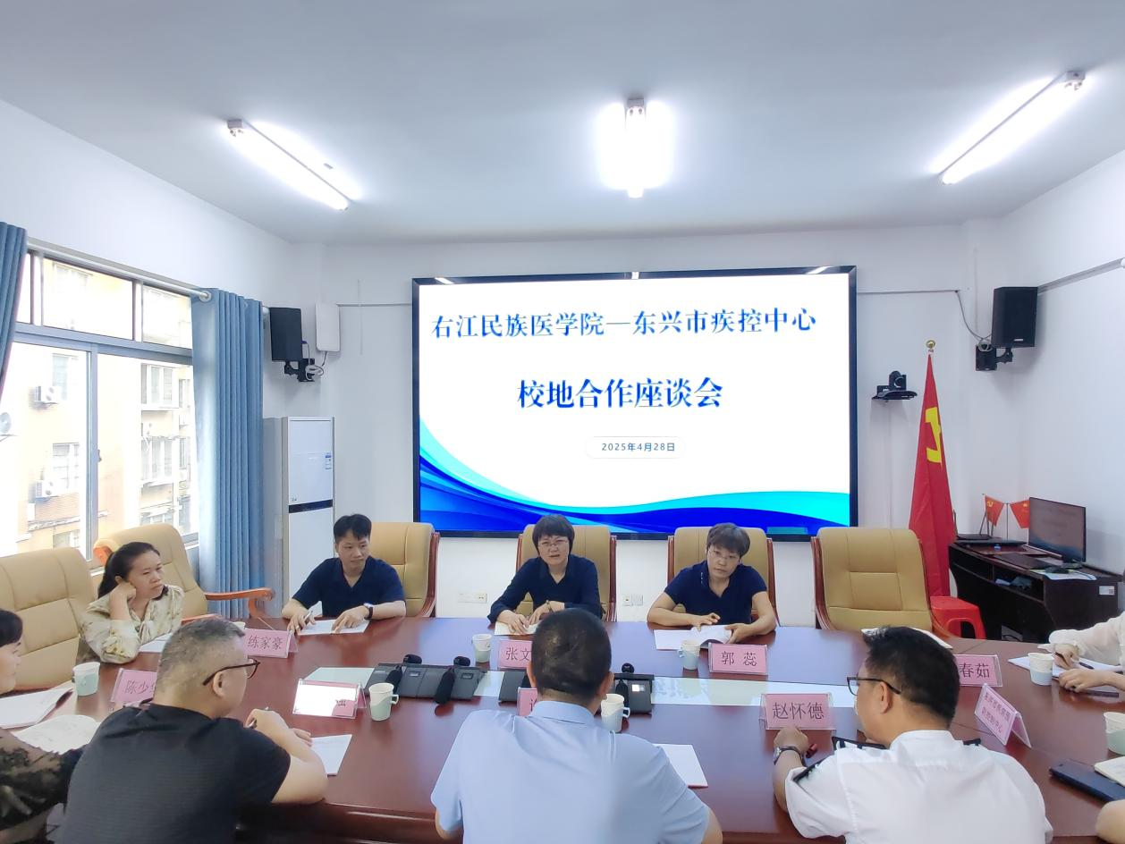 4月28日上午,必赢242net官网公共卫生学院党委书记张文玲、院长郭蕊、学科建设科、教学科一行4人赴东兴市疾病预防控制中心,围绕校地合作开展专题座谈交流,并实地参观实验室。东兴市疾病预防控制中心主任许瑞伟、副主任李志强、赵怀德、陈少华及相关科室负责人参加会议。