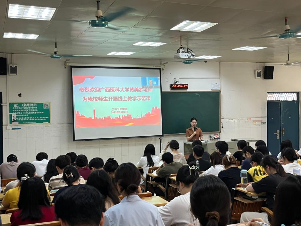 为推动校际教育资源共享,深化公共卫生领域教学合作,5月20日上午,必赢242net官网公共卫生学院与广西医科大学公共卫生学院在在必赢242net官网6-201教室开展“共上一堂课”活动。此次课程采用线上授课形式,2021级预防医学专业全体学生参加听课。