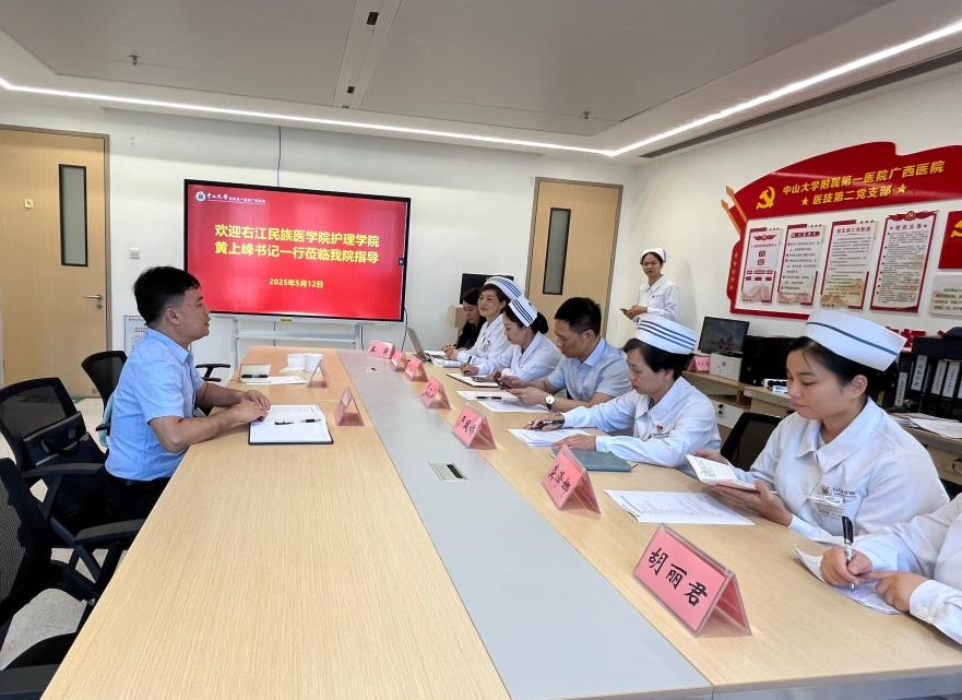 黄上峰携韦艳玲、麦伊老师带领学生前往中山大学附属第一医院广西医院、前海人寿南宁医院。在中山大学附属第一医院广西医院实习生座谈会上,黄上峰强调:“医校合作是培养高素质护理人才的关键路径,我们将持续整合资源,为学生打造更广阔的学习实践平台,为社会输送更多优秀护理专业人才。” 此番发言引发热烈共鸣,双方就深化医校合作达成多项共识,为后续协同育人奠定坚实基础。