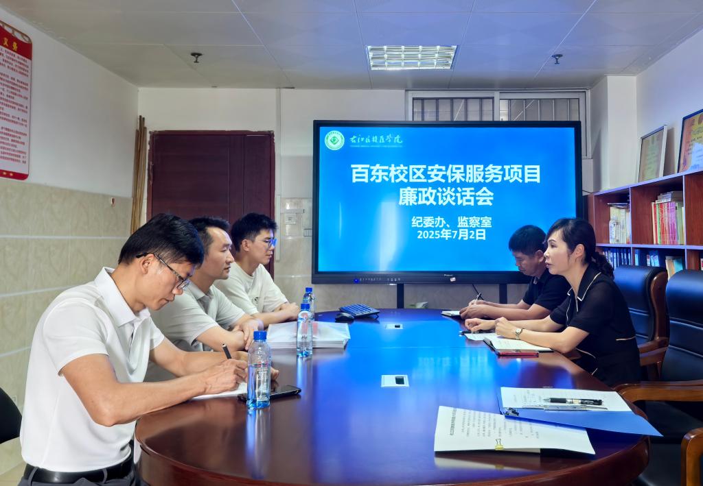 7月2日,百东校区1、2期安保服务中标方广西百色市保安服务有限责任公司正式与必赢官网签订服务合同。在签订服务合同的同时,在7栋11楼学校纪委会议室,学校纪委召集中标方代表、学校保卫处领导开展廉政谈话,并签订廉洁承诺书,督促项目方与学校职能部门强化纪法观念,时刻紧绷廉洁自律之弦。