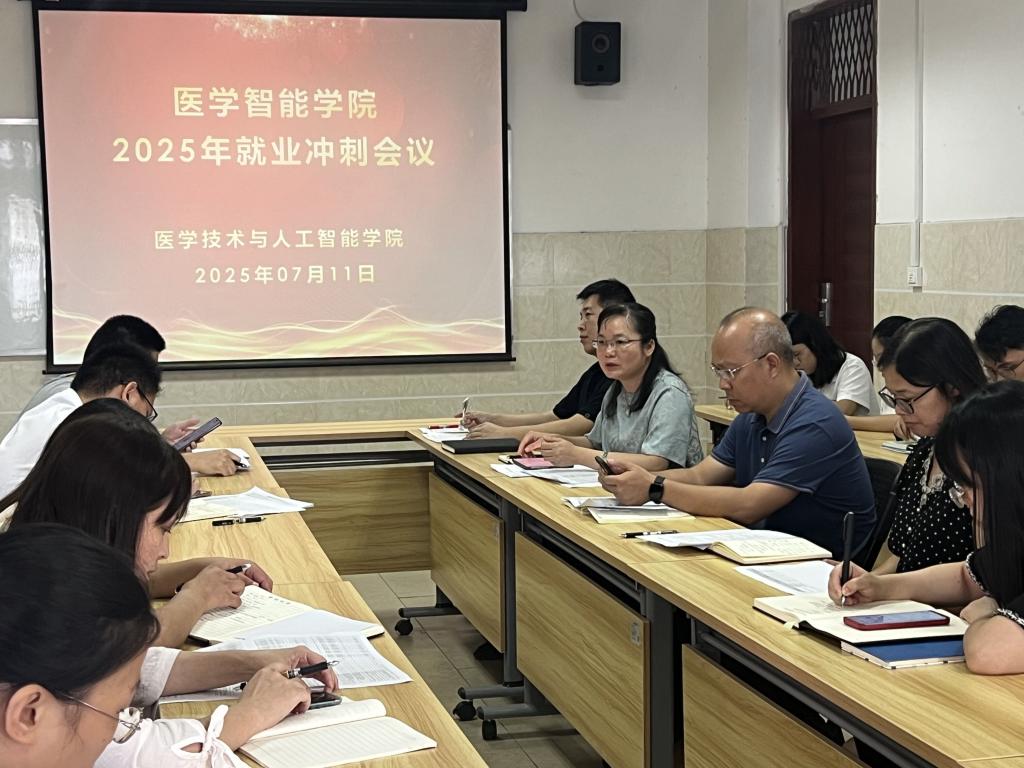 为深入贯彻落实国家关于高校毕业生就业工作的最新部署,全力推动2025届毕业生实现充分高质量就业,2025年7月11日,医学技术与人工智能学院在7-609会议室召开2025届毕业生就业冲刺会议。