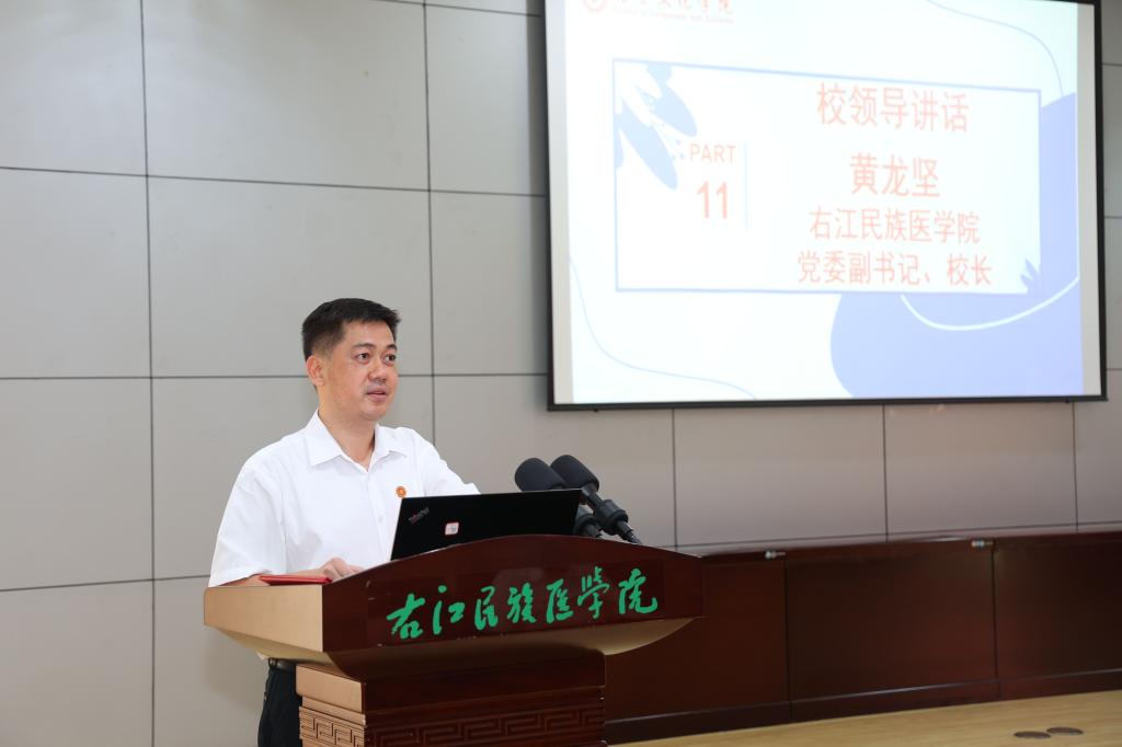 会上,黄龙坚校长代表学校向语言文化学院校友会的成立表示热烈祝贺。他指出,语言文化学院始终坚持“学科、专业、学位点”一体化协同发展,不断深化教育教学改革,积极探索多元化、全方位的人才培养模式,为社会培养了大量具备国际视野、语言技能和文化素养的“三有”应用型复合外语人才。希望校友们无论身在何处,团结一心,密切联系,并加强与母校的交流,共同促进母校办学事业繁荣发展,携手书写“母校因校友而卓越,校友因母校而精彩”的新篇章!