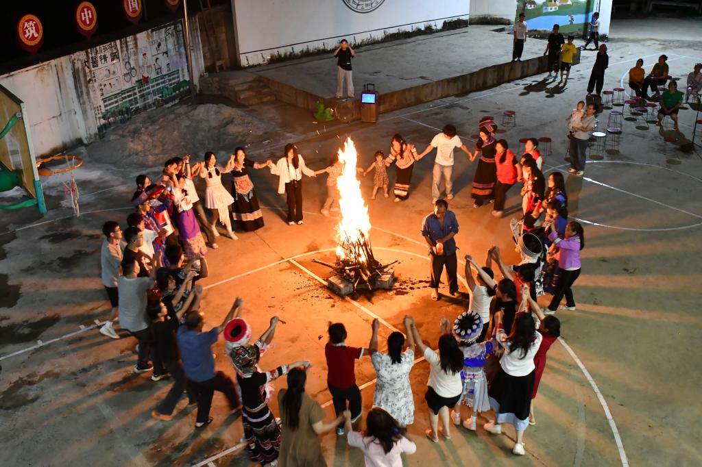 此外,实践团还开展乡村振兴主题墙绘活动,为乡村增添一道绚丽风景线;在“润泽童心,向阳成长” 活动中,他们和小朋友们互动并向孩子们普及刷牙知识;还携慰问品前往卫生所拜访驻村医生,了解基层医疗现状;与村民携手举办了文艺汇演和篝火晚会,共享民族团结与乡村振兴的丰硕成果。实践活动临近尾声,团队组织清扫乡村道路,为营造干净整洁的村容村貌贡献了力量。